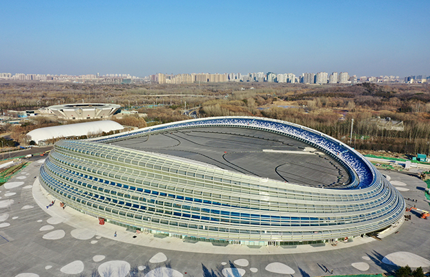 國(guó)家速滑館是北京2022年冬奧會(huì)北京賽區(qū)新建的標(biāo)志性場(chǎng)館,位于奧林匹克森林公園南園西北側(cè),北鄰國(guó)家網(wǎng)球中心,東臨奧林西路、西臨林萃路。速滑館屋面外緣設(shè)有建筑一體化的太陽能光伏電力系統(tǒng),藍(lán)色的單元電池板自屋頂外邊緣向內(nèi)側(cè)漸變排列,如同正在融化的雪,展現(xiàn)冬季運(yùn)動(dòng)的特色。